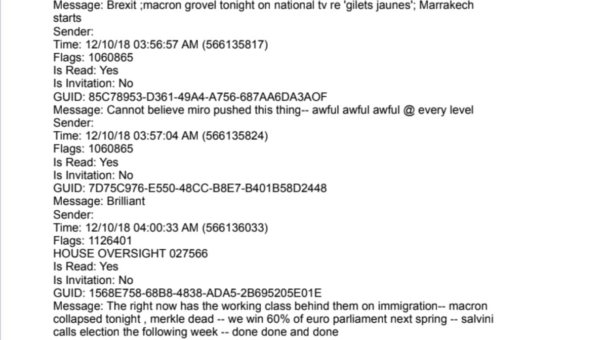 „Miro“ je potom pre Migračný pakt terčom kritiky v komunikácii Epsteina s neznámou osobou, z ktorej vyplýva, že ide o Bannona. Ten Epsteina detailne informuje o svojich stretnutiach a udalostiach v Európe.